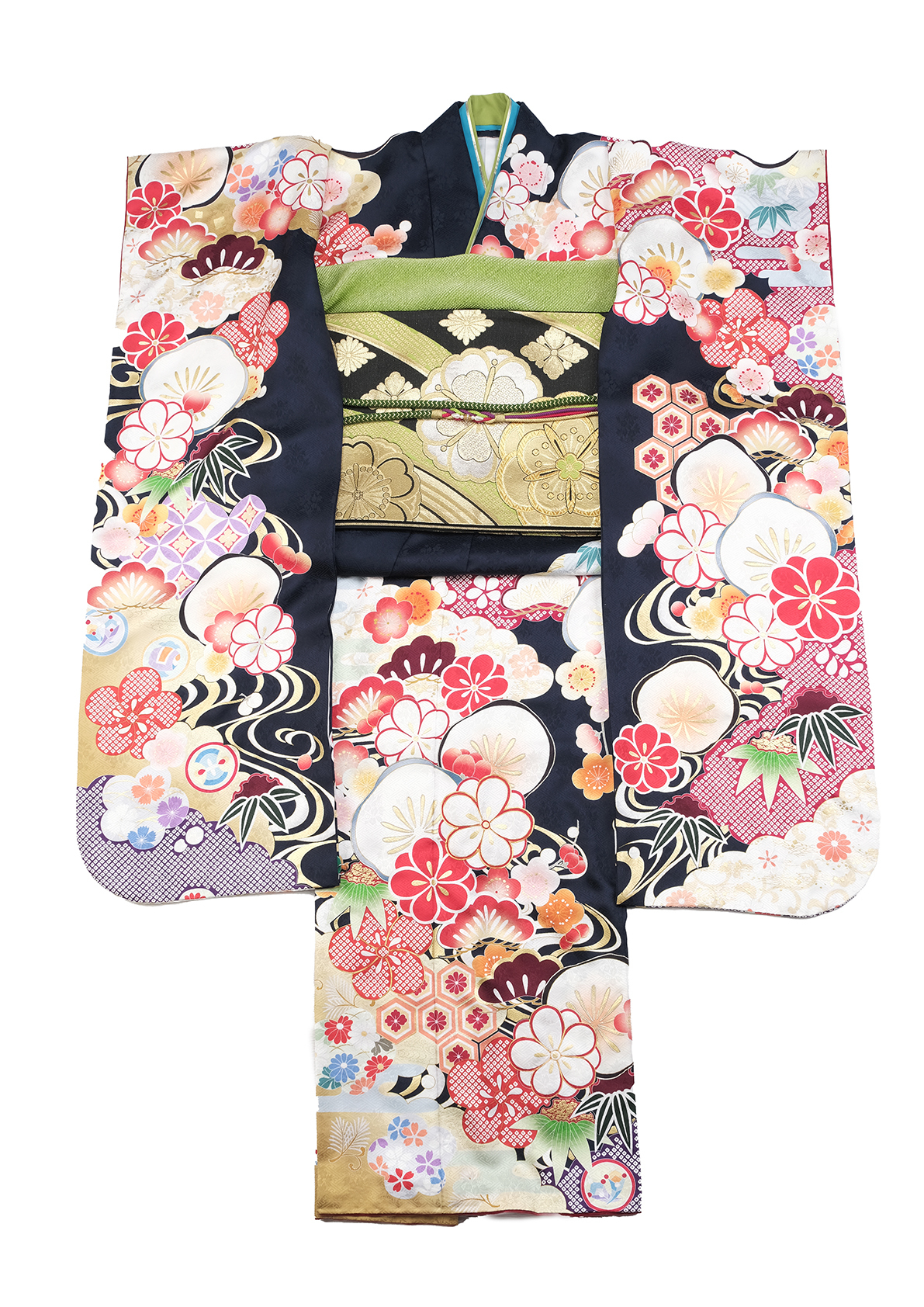 紺色で華やかな柄が特徴