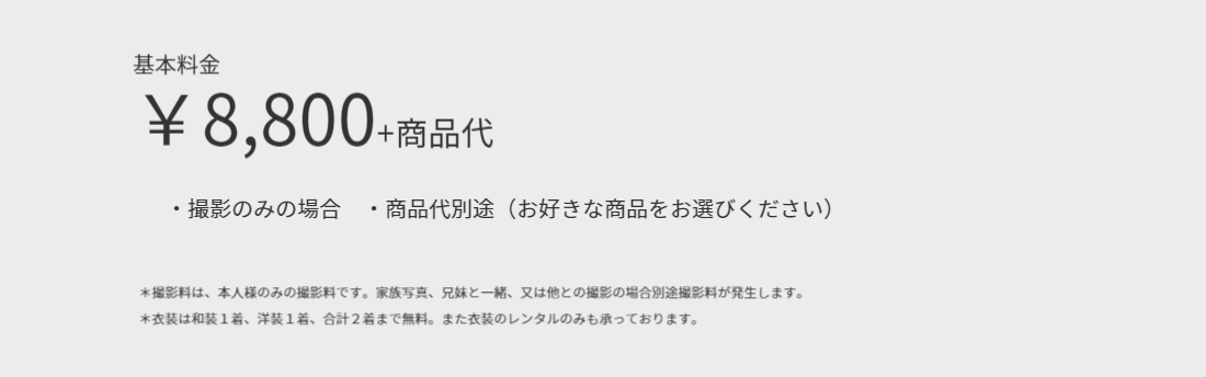 - 衣装レンタルプランもございます。お出かけ衣装料金¥11,000
